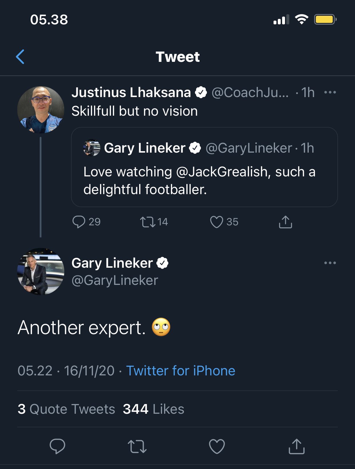 Coach Justin Di Serang Gary Lineker Karena Grealish Coach Justin Salah Bedah Jack Grealish Youtube
